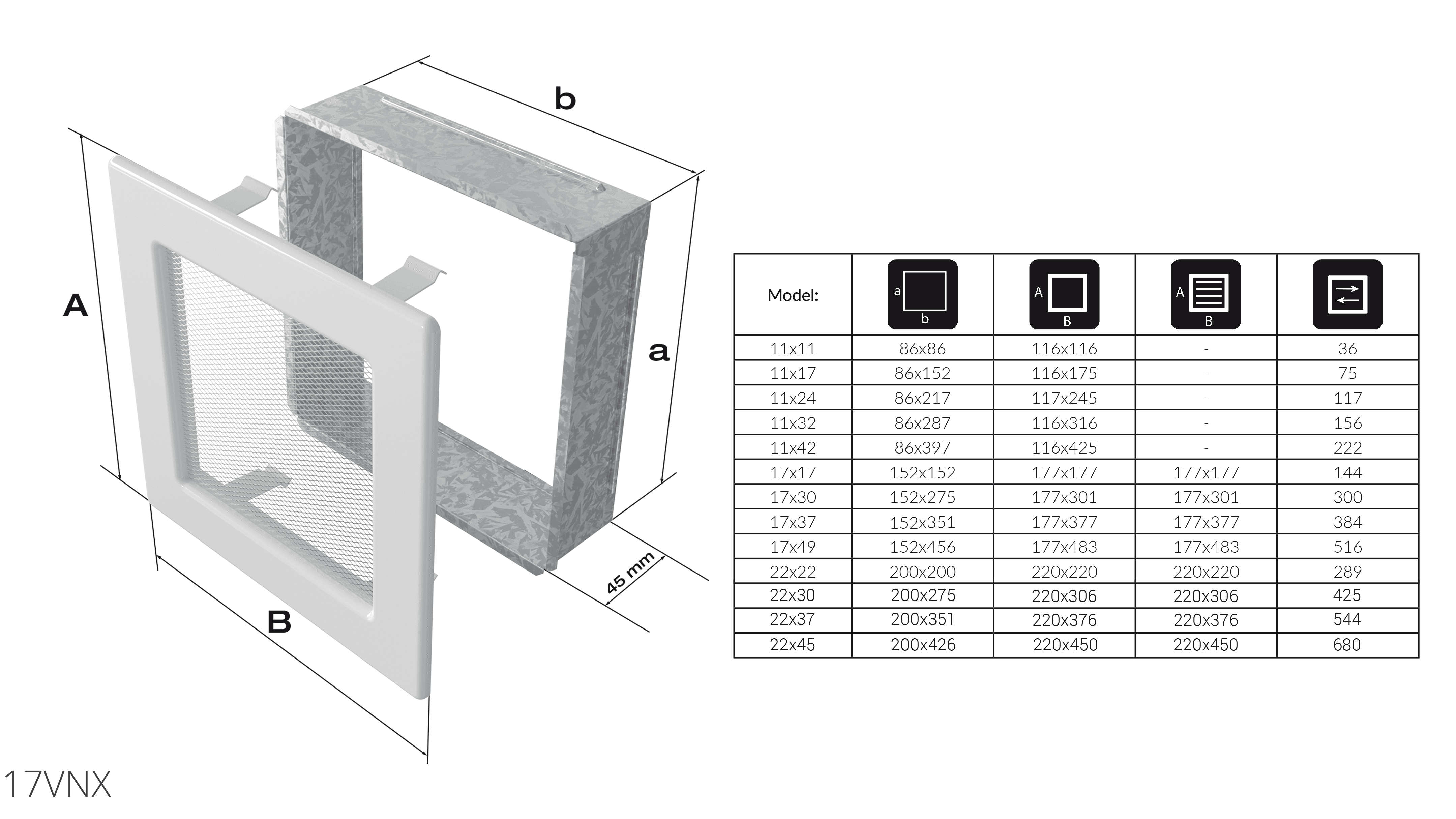 Kratka Venus niklowana z żaluzją 17x17
