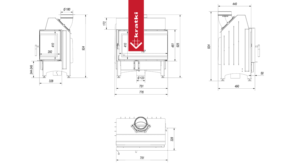 Kominek powietrzny stalowy KRATKI ZIBI prawy BS 11 kW Ø 180 DECO